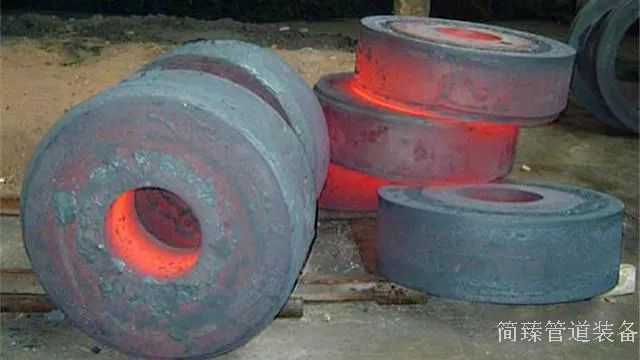 還要通過(guò)沖壓機(jī)在鋼坯上沖壓出法蘭上面的圓孔,成型的毛坯法蘭要放入電爐中進(jìn)行熱處理增加法蘭的強(qiáng)度,最后還要對(duì)法蘭毛坯切割拋光成為可以使用的法蘭。
